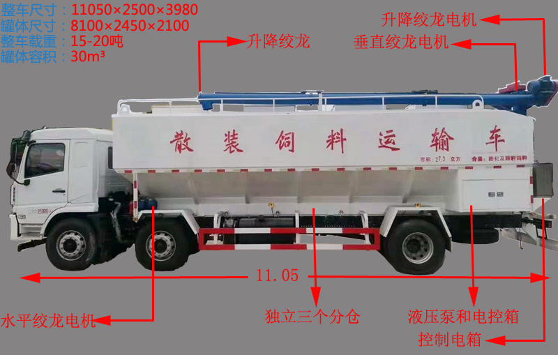 (4)料罐容積30-354個獨立倉,實載:豬料 17-19噸,雞料19-21噸