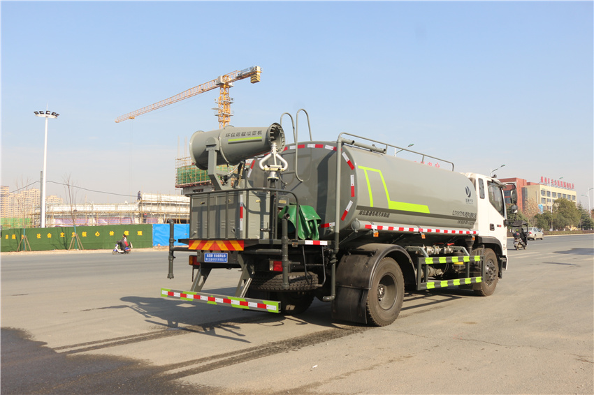 該車用途為抑塵降霾.主要裝置為罐體及噴霧裝置;罐體有效容積:9.8立方米;罐體外形尺寸(×長軸×短軸)(mm):4000×2300×1540;側、后防護材料均為:Q235碳鋼,連接方式均為:螺栓連接,后部防護截面尺寸(mm):120×50,后部防護離地高度(mm):460;ABS型號為CM4XL-4S/4M,生產廠家為廣州瑞立科密汽車電子股份有限公司.隨底盤選裝駕駛室,選裝噴霧裝置樣式。